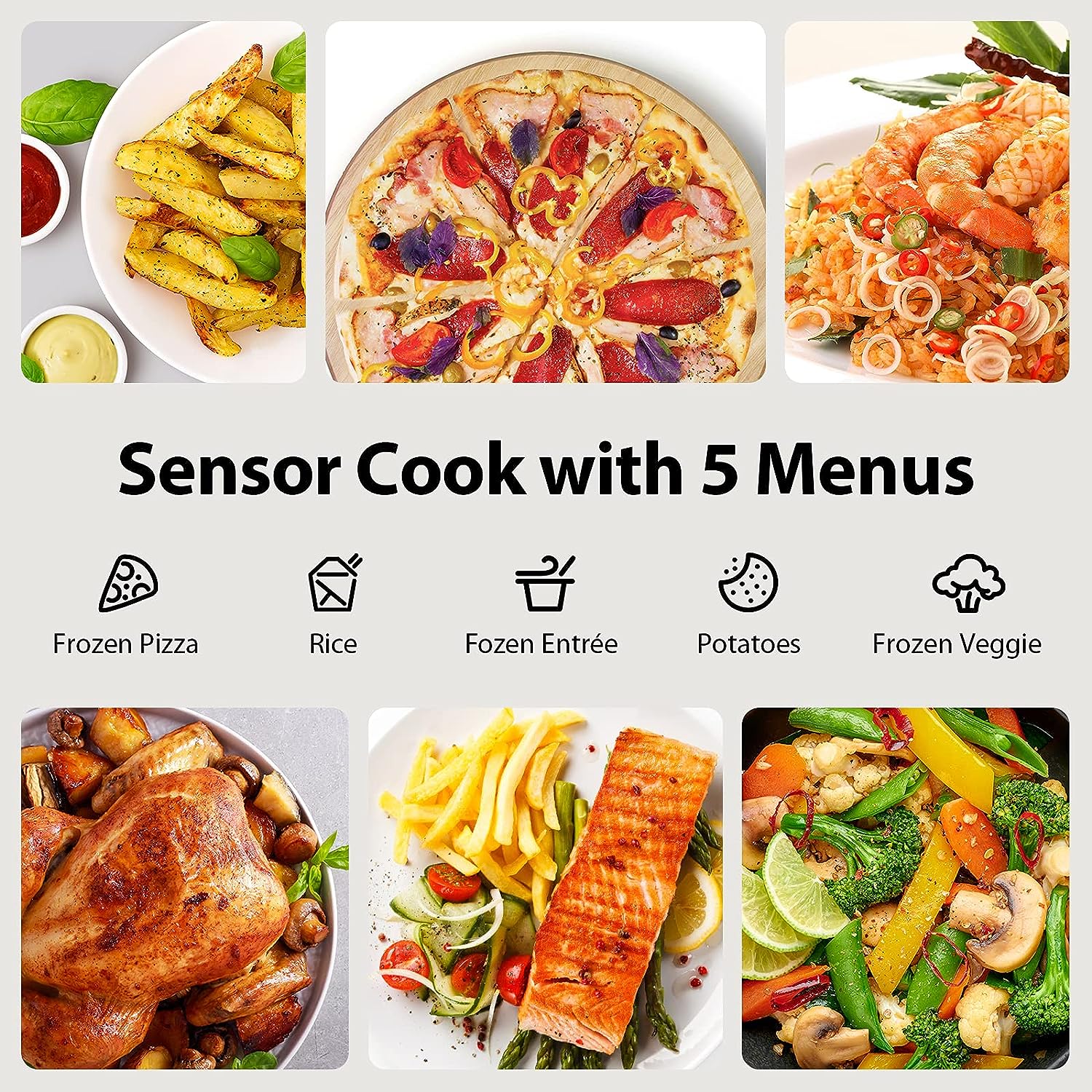 - 【Pre-programmed sensor menu】 for optimum heating of popular foods like pizza, potatoes, veggies and more; Power Wattage (Microwave): 1100W; Rated Voltage: 120V – 60Hz